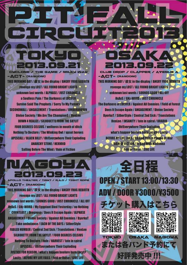 前売¥3,000-(1D別) 当日¥3,500-(1D別)