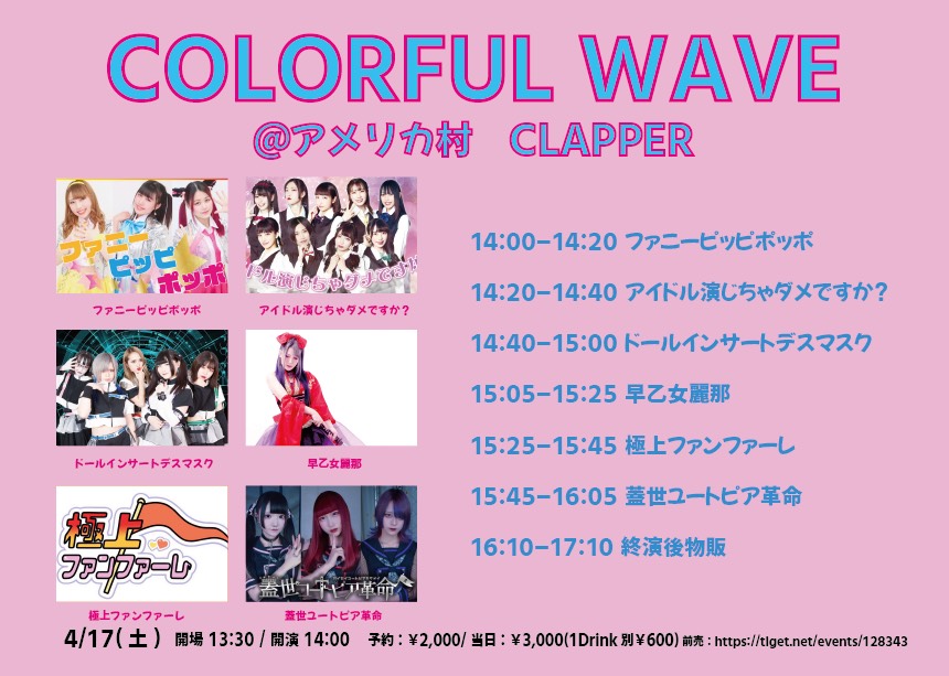 ※超アイドルちぃちゃは出演キャンセルとなりました。それに伴いSTARTが11:40に変更となります。 ご迷惑をおかけしますが、ご理解のほどよろしくお願いいたします。