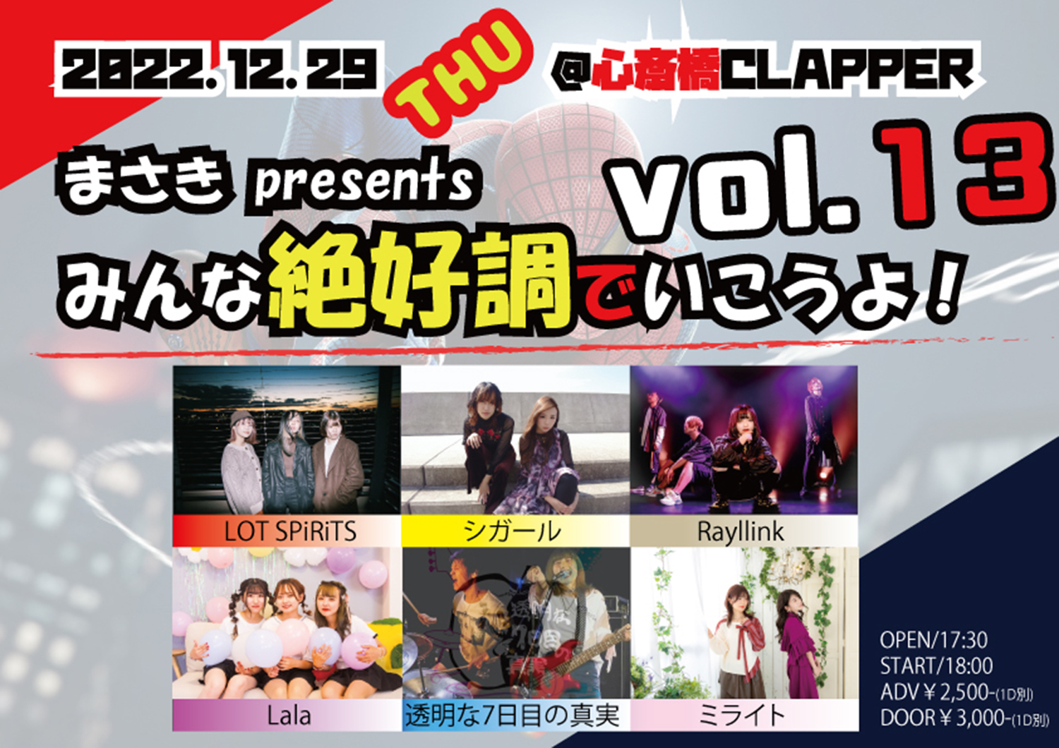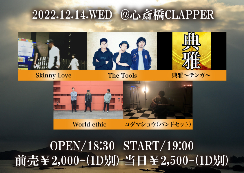 前売¥2,500-(1D別) 当日¥3,000-(1D別)
