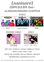前売¥1,000-(1D別) 当日¥1,000-(1D別)