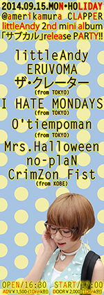 前売¥2000-(1D別) 当日¥2300-(1D別)