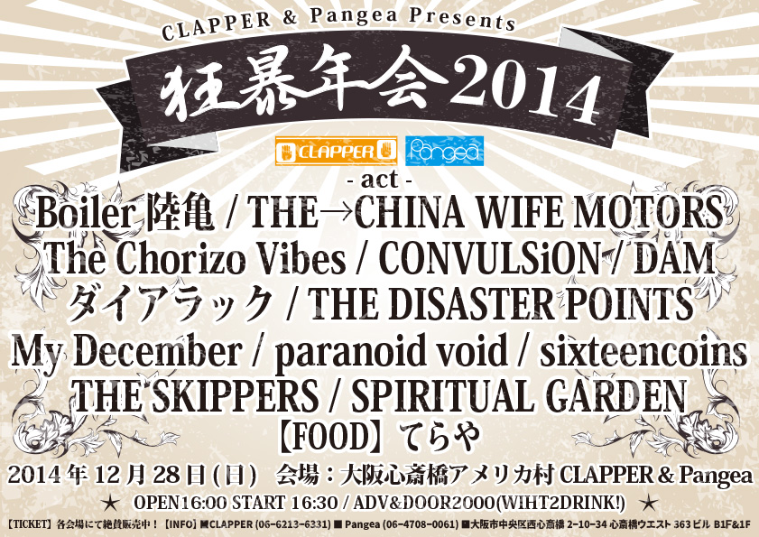 前売¥2,000-(1D別) 当日¥2,500-(1D別)
