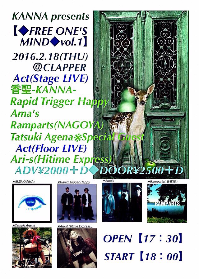 前売¥2,000-(1D別) 当日¥2,000-(1D別)