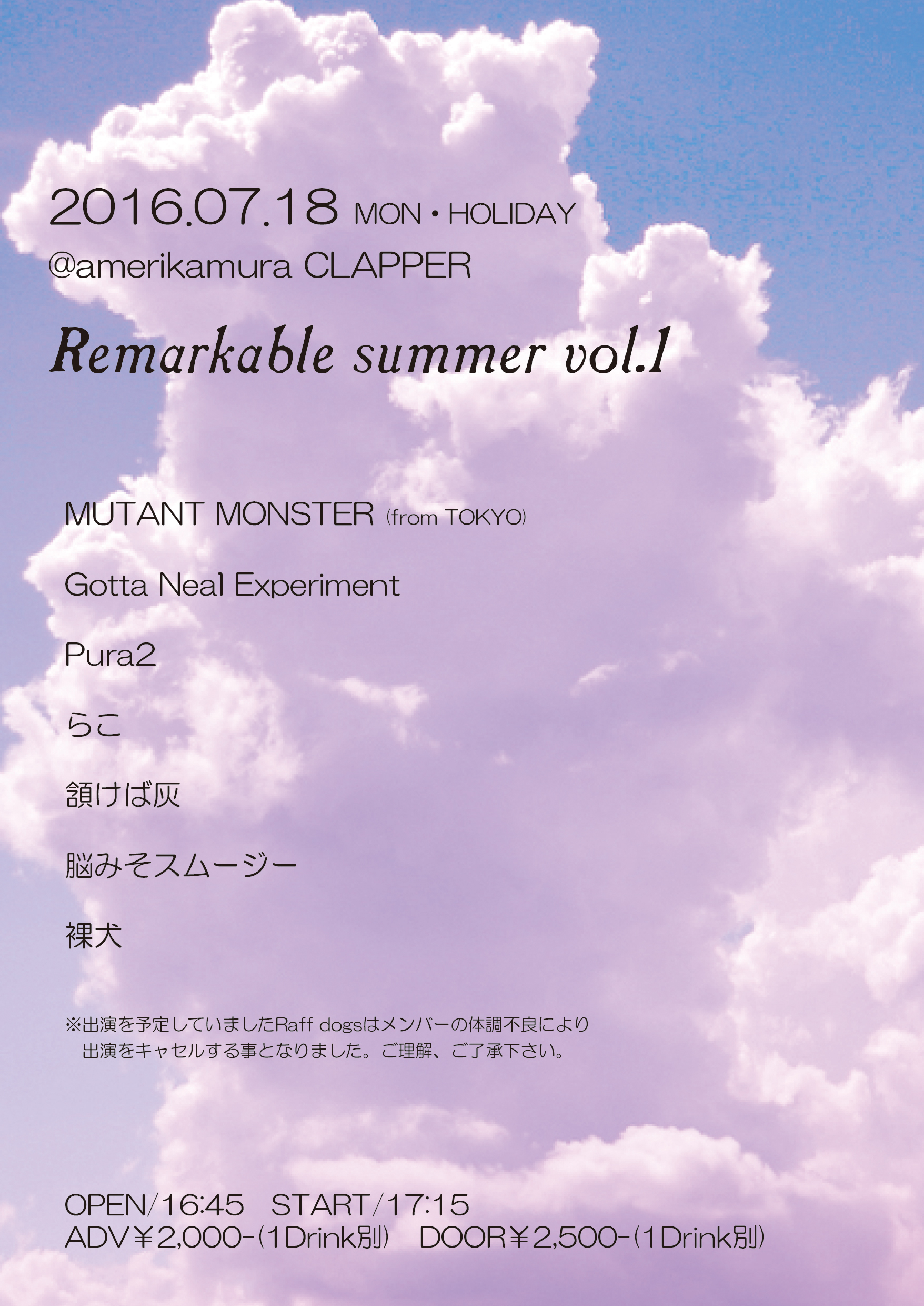 前売¥500-(1D別) 当日¥800-(1D別)