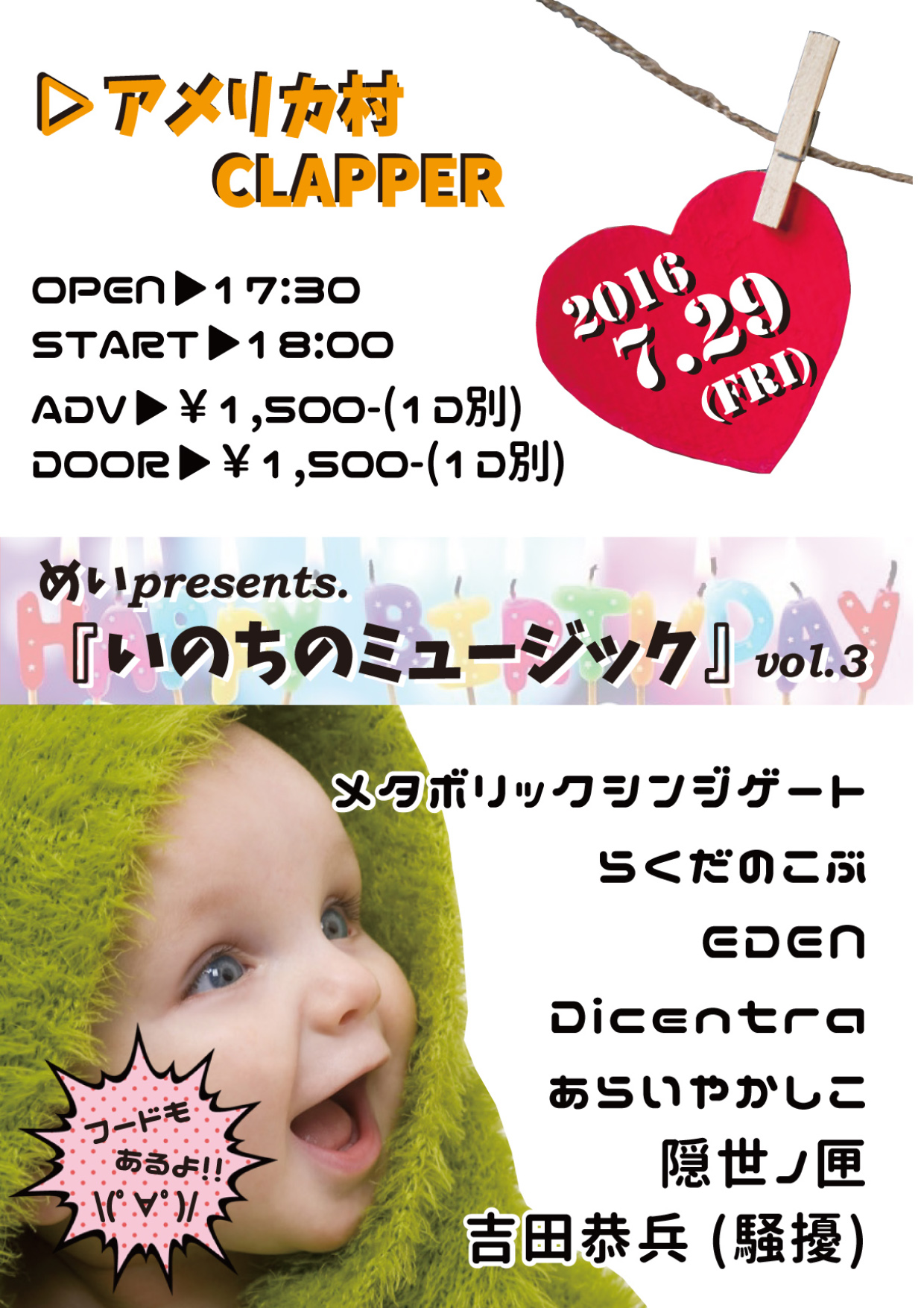 前売¥1,500-(1D別) 当日¥2,000-(1D別)