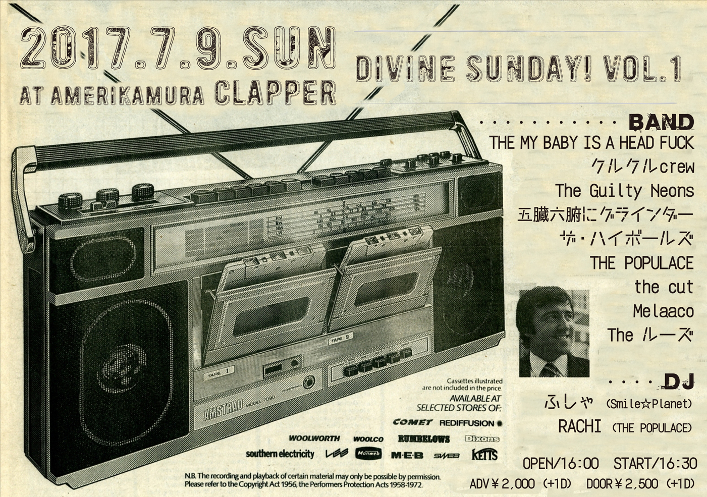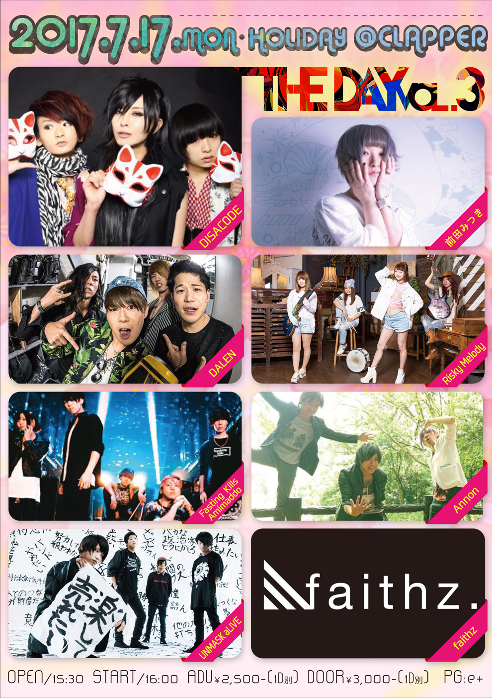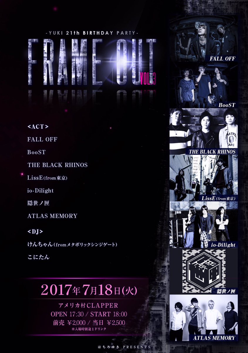 前売¥2,500-(1D別) 当日¥3,000-(1D別)