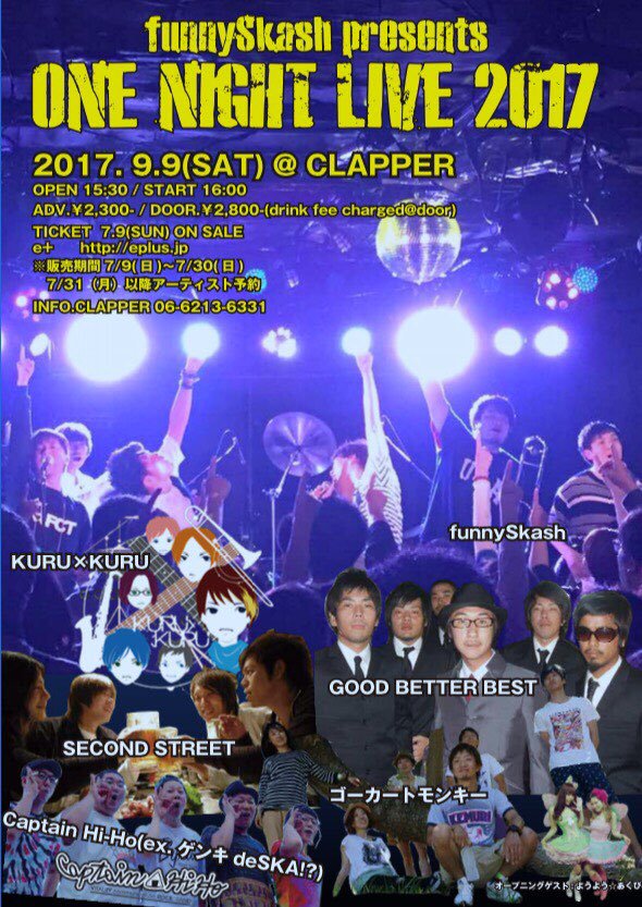 前売¥1,500- (1D別) 当日¥2,000- (1D別)