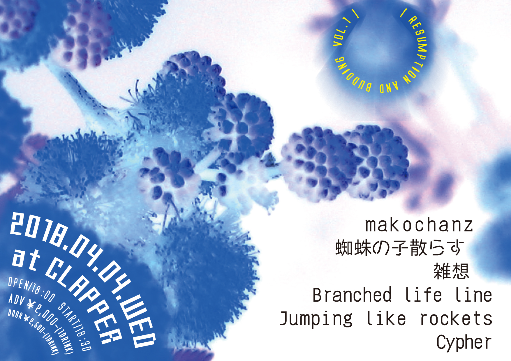 前売¥1,000-(1D別) 当日¥1,000-(1D別)