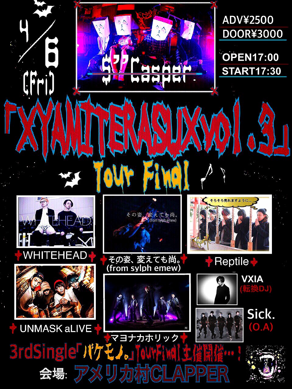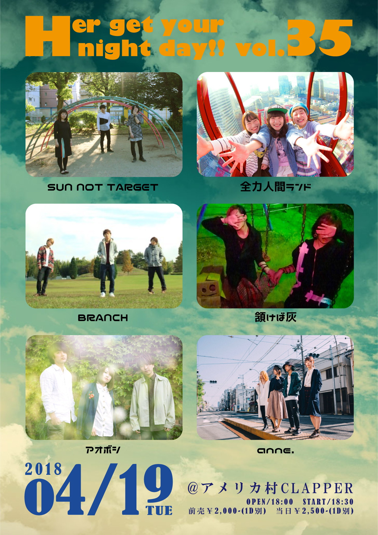 前売¥2,500-(1D別) 当日¥3,000-(1D別)