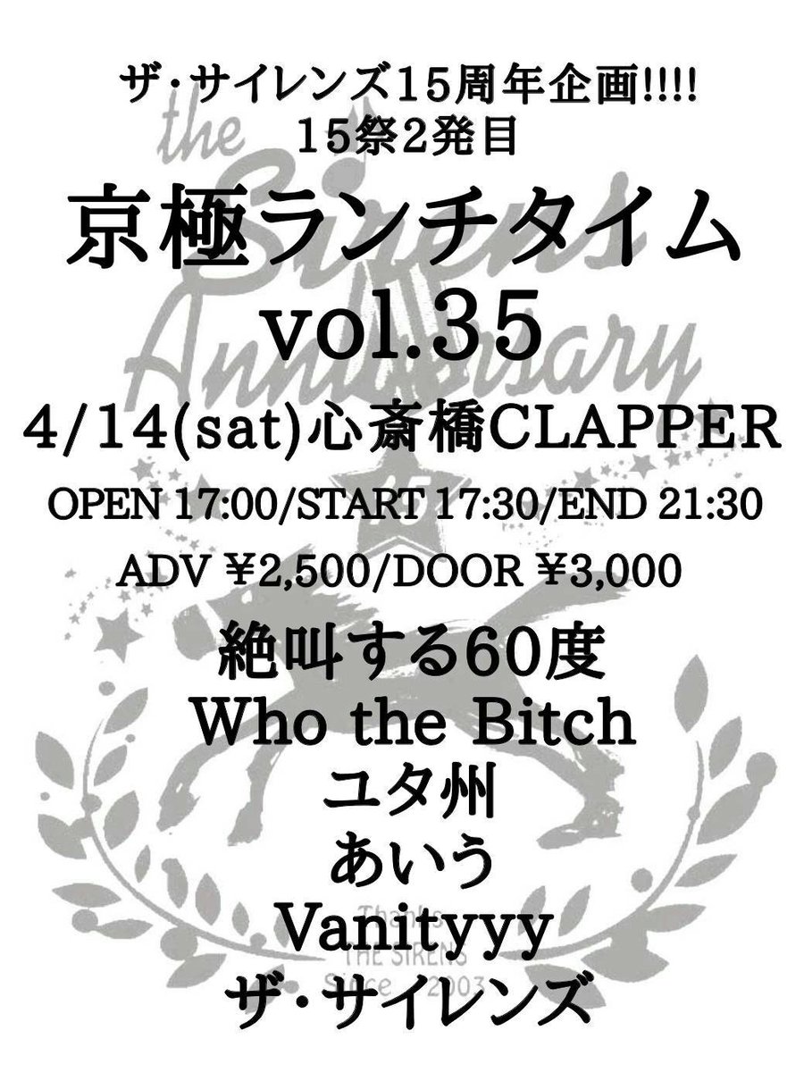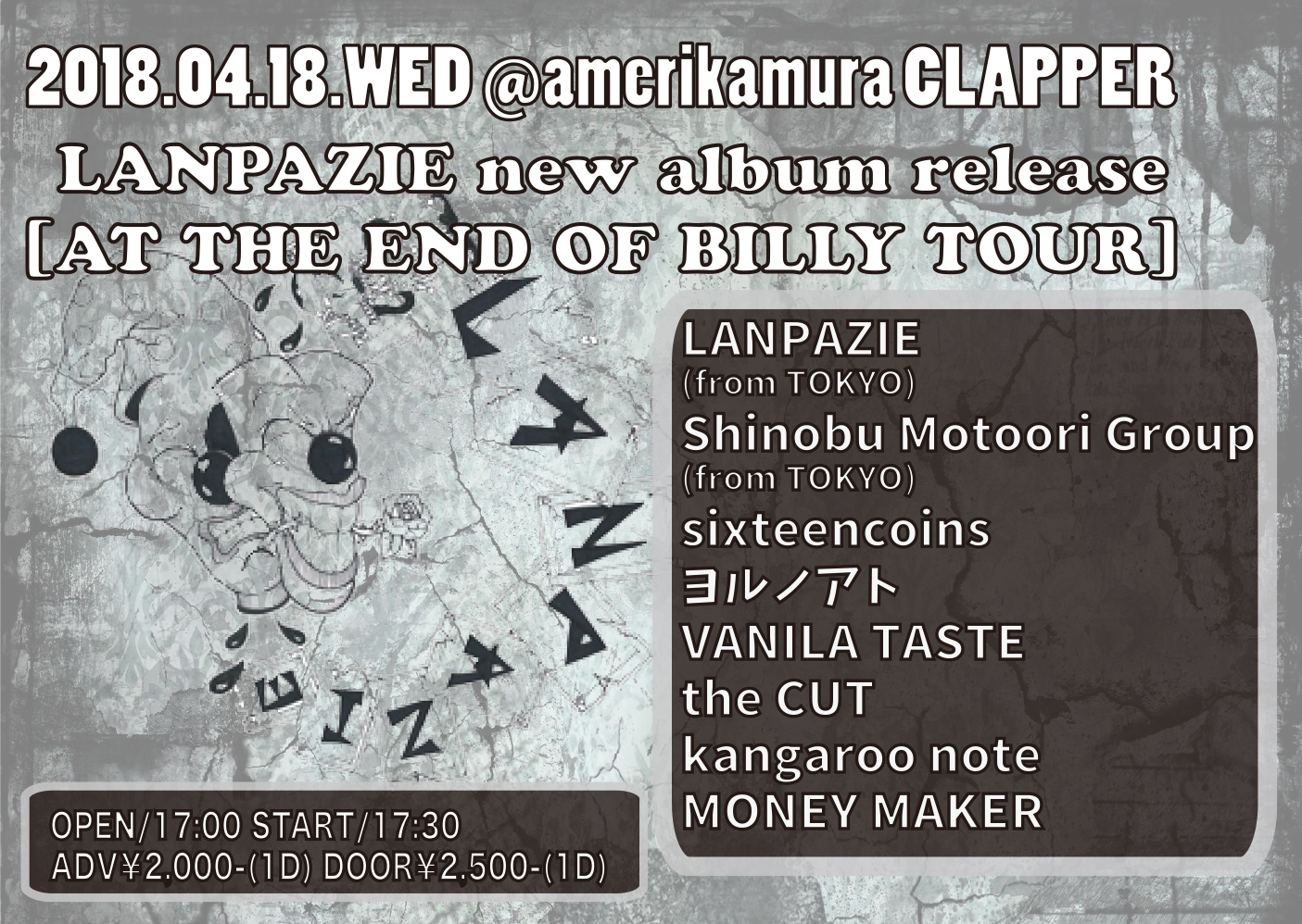 OPEN/17:00 START/17:30に 変更となりました。