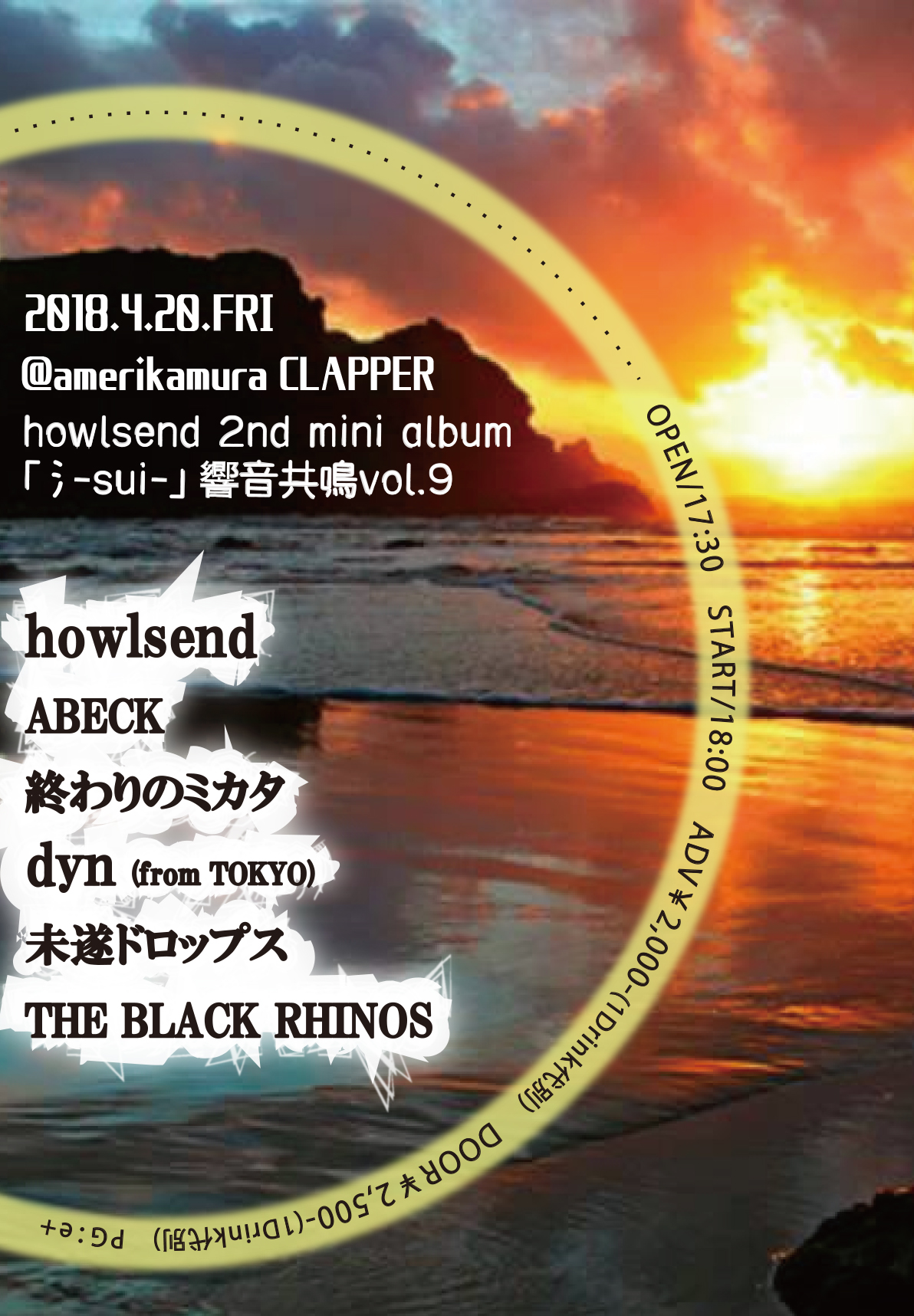 ※OPEN/STARTがOPEN/17:30 START/18:00から