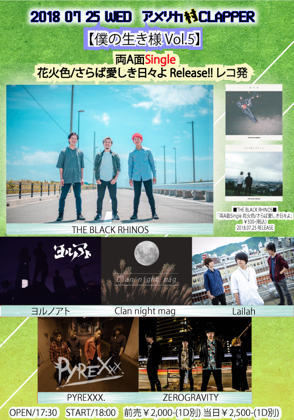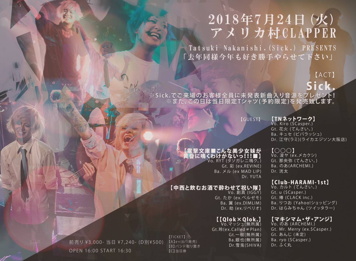 前売¥3,000-(1D別) 当日¥3,500-(1D別)
