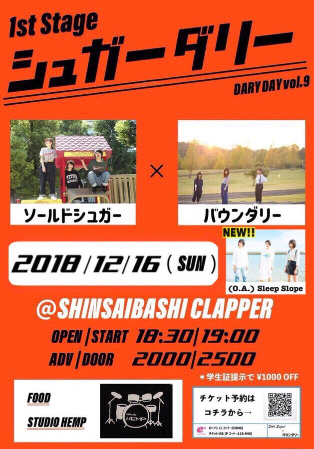 前売¥2,000-(1D別) 当日¥2,000-(1D別)