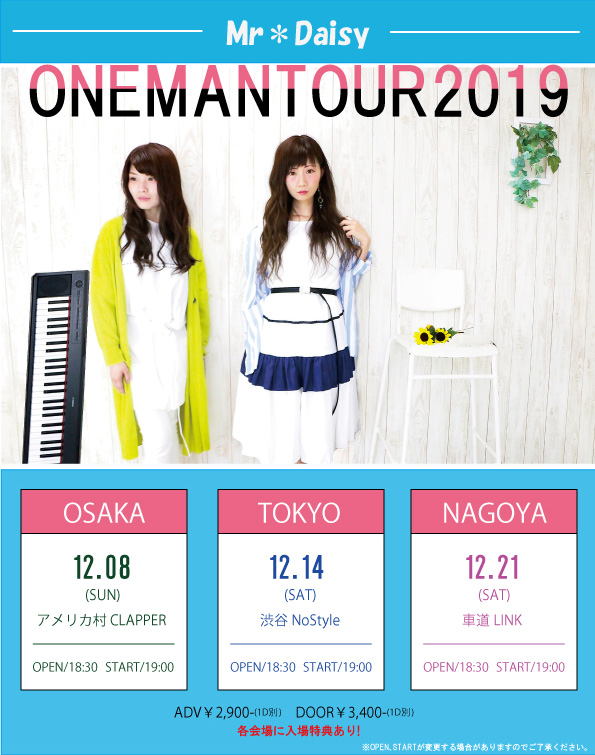 前売¥2,300-(2D別) 当日¥2,800-(2D別)