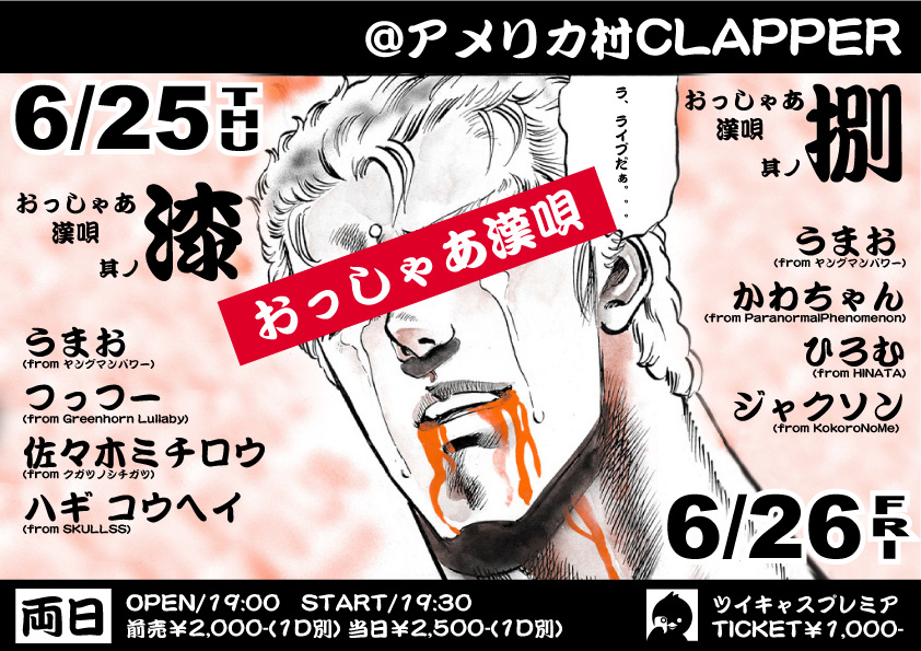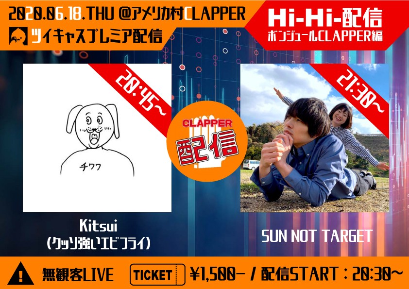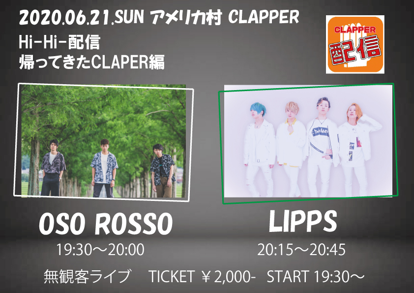 2020/6/20(土)に大阪アメリカ村CLAPPERにて