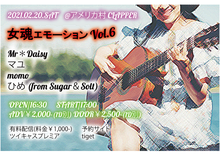 前売¥2,000-(1D別) 当日¥2,000-(1D別)