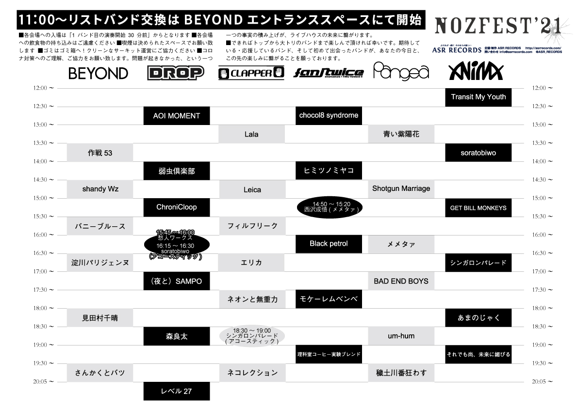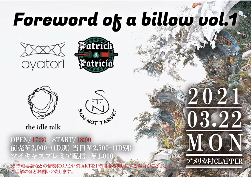 OPEN/START時間が後ろ倒しになる場合がございます。