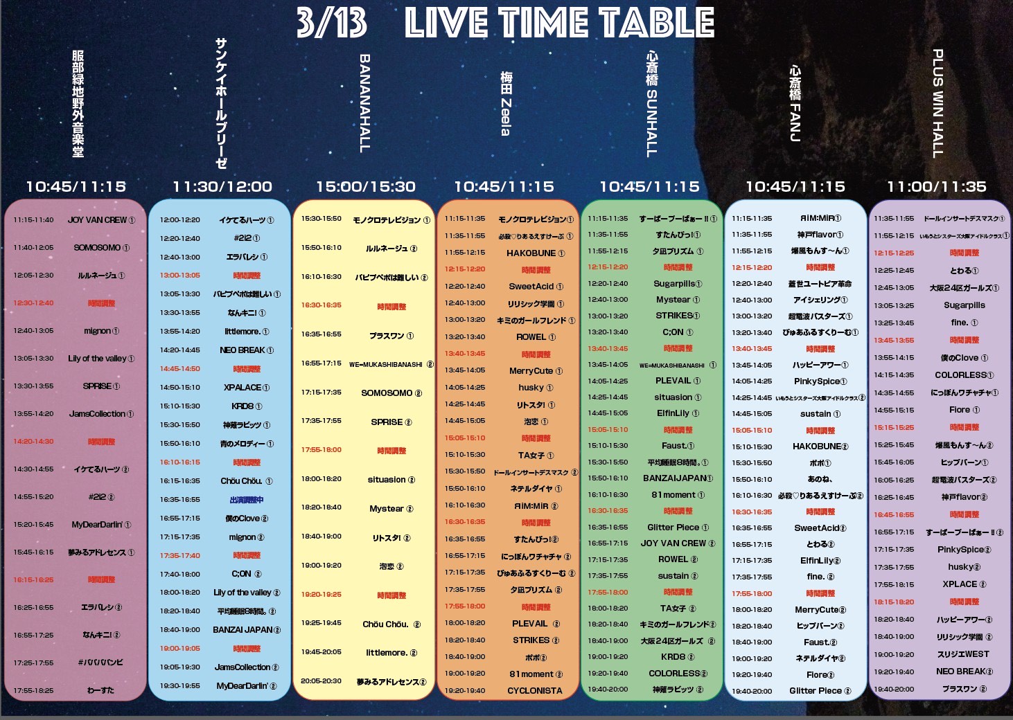 OPEN / START 随時発表!! ※各会場異なります