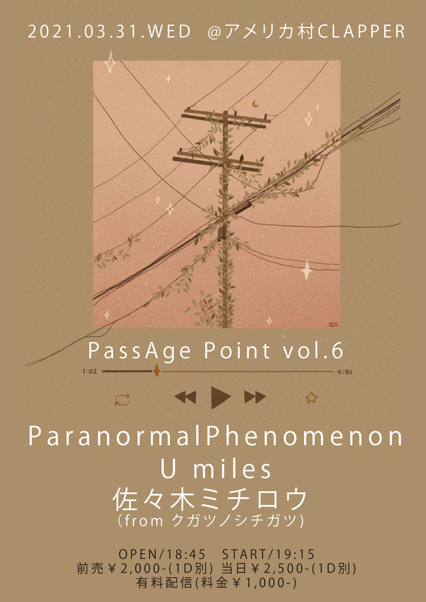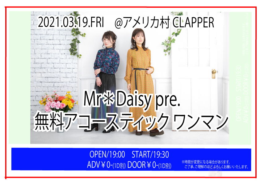 OPEN/19:00 START/19:30 (予定)