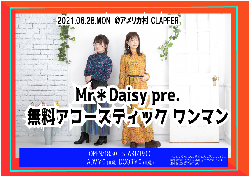 前売¥2,400-(1D別) 当日¥2,900-(1D別)