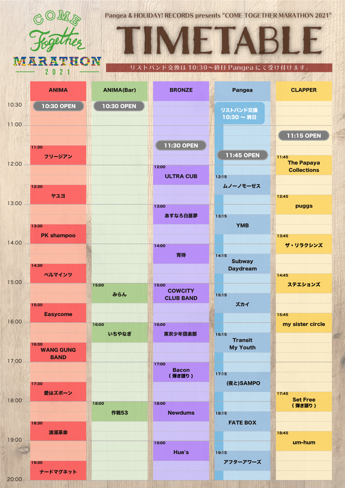 ※ANIMA / BRONZE / CLAPPER / Pangea 4会場を自由に行来出来る サーキットイベントです。