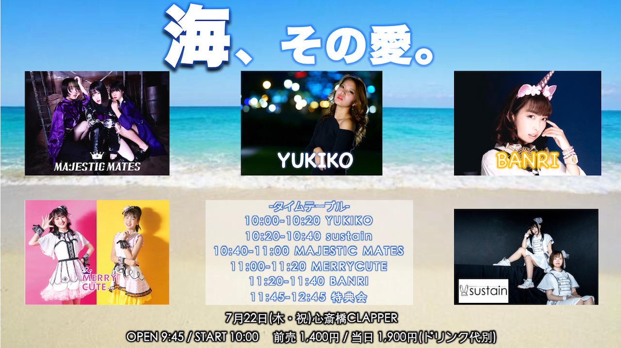 前売¥4,500-(1D別) 当日¥5,000-(1D別)