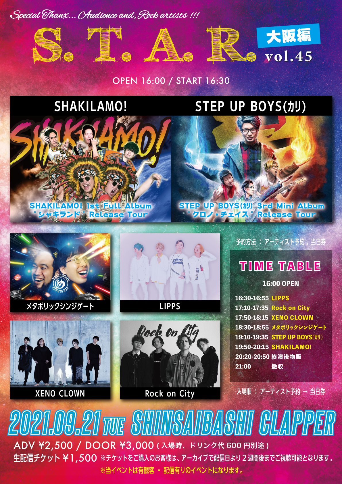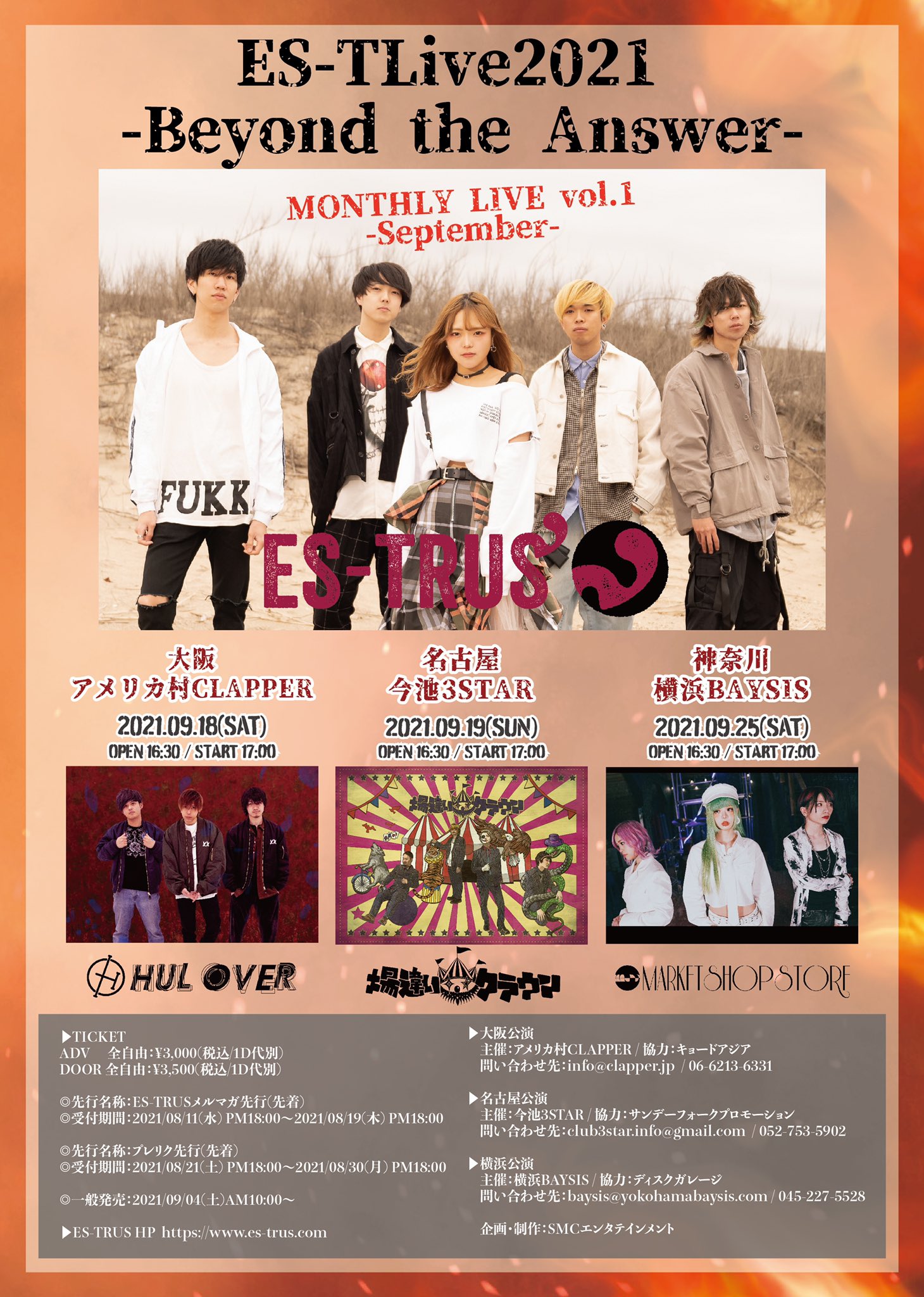 前売¥4,900-(1D別) 当日¥5,400-(1D別)
