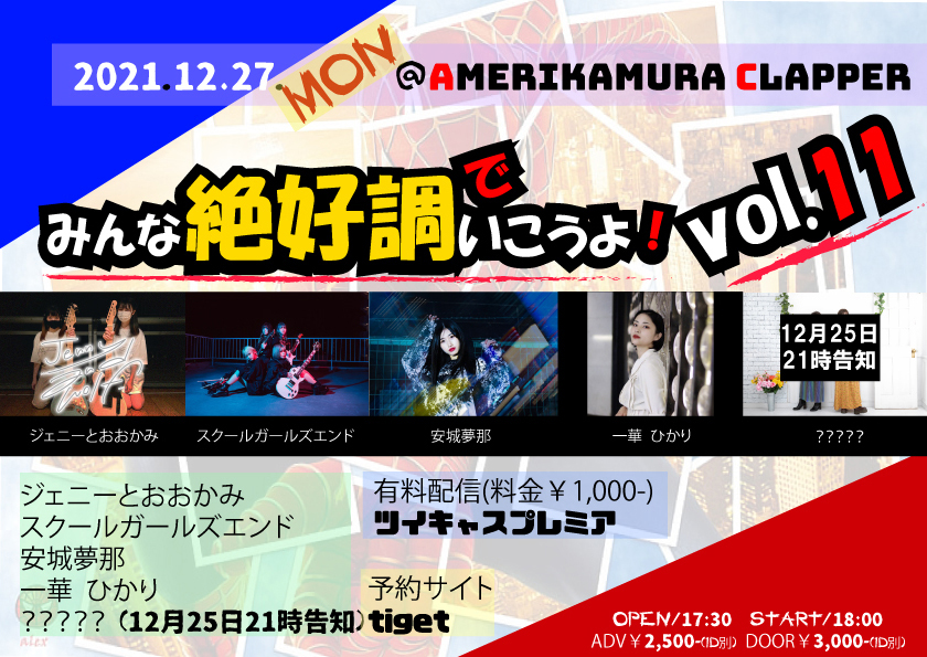 前売¥2,500-(1D別) 当日¥3,000-(1D別)