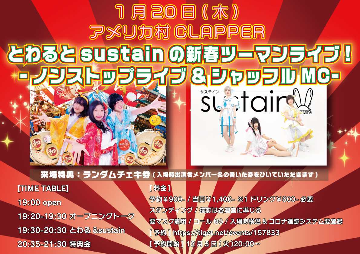 ※sustainメンバーよりPCR検査陽性判定が出たため、イベント出演キャンセルとなりました。それに伴い本公演を中止でとさせていただきます。