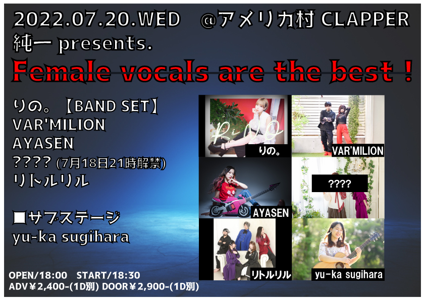 それに伴いOPEN/18:00 START/18:30に変更となります。