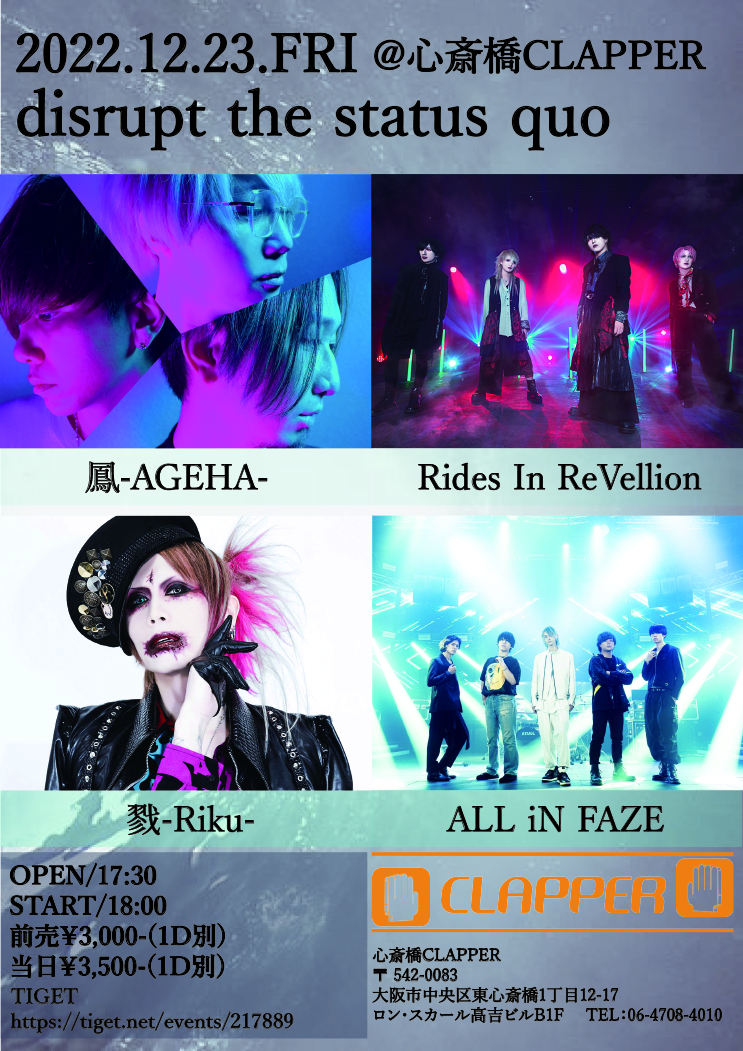 前売¥2,400-(1D別) 当日¥2,400-(1D別)